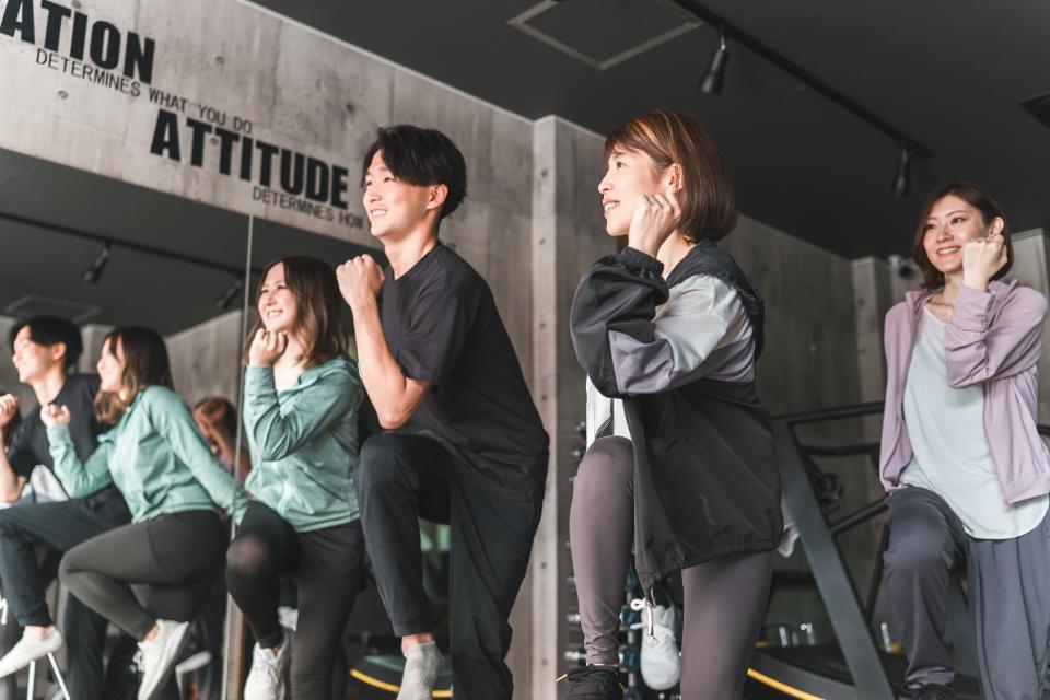 エアロビクスは、音楽のリズムに合わせて身体を動かしながら、心肺機能の向上や脂肪燃焼を目指す有酸素運動です。全身を大きく使う動きが多く、楽しみながらしっかり汗を流せるのが魅力。運動不足解消や気分転換にもぴったりのレッスンです。ENERGY24では、レベル別のエアロビクスをご用意しているため、初心者の方から経験者まで、自分に合ったクラスを選んで参加できます。